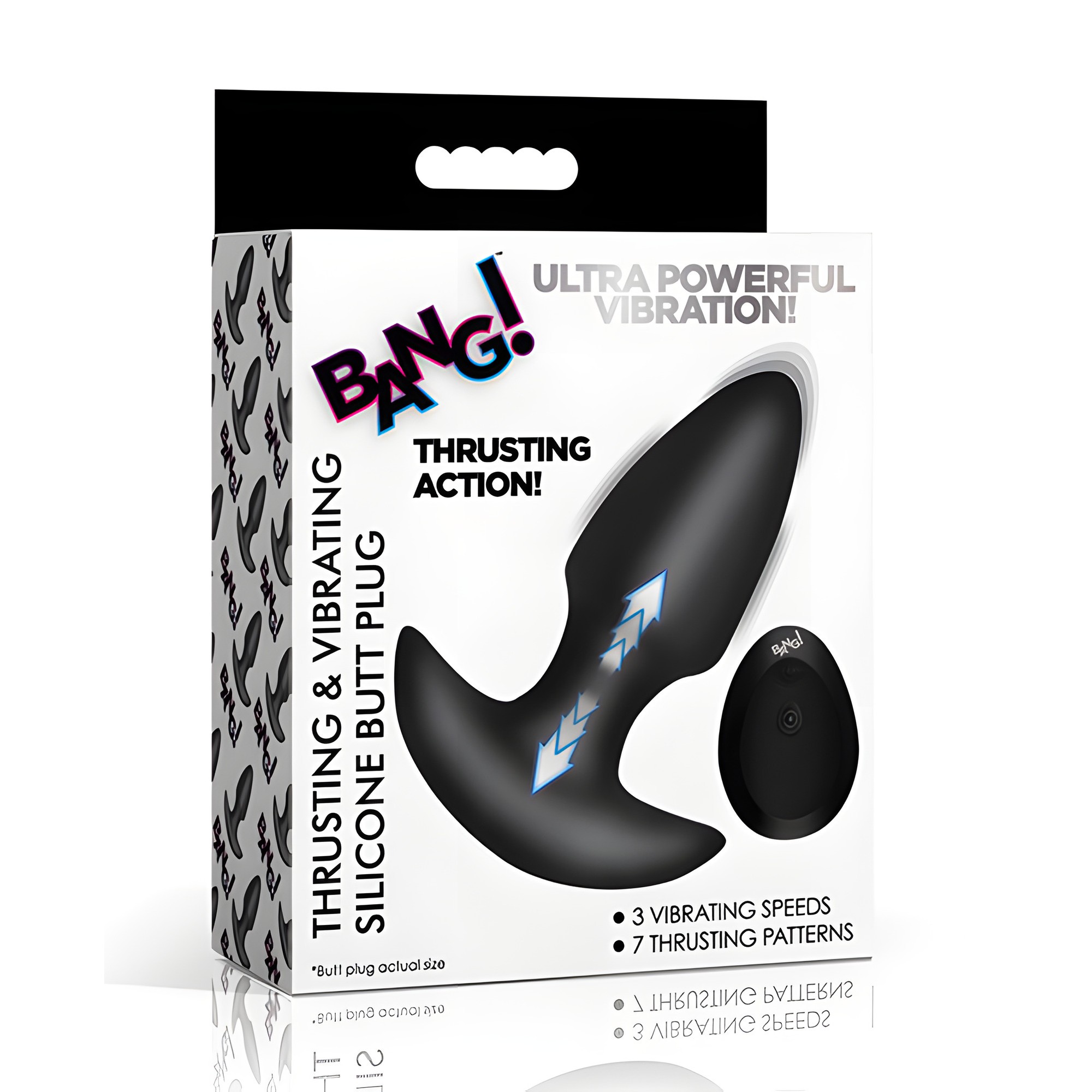 Experience hands-free pleasure with the Bang! Thrusting & Vibrating Butt Plug.
