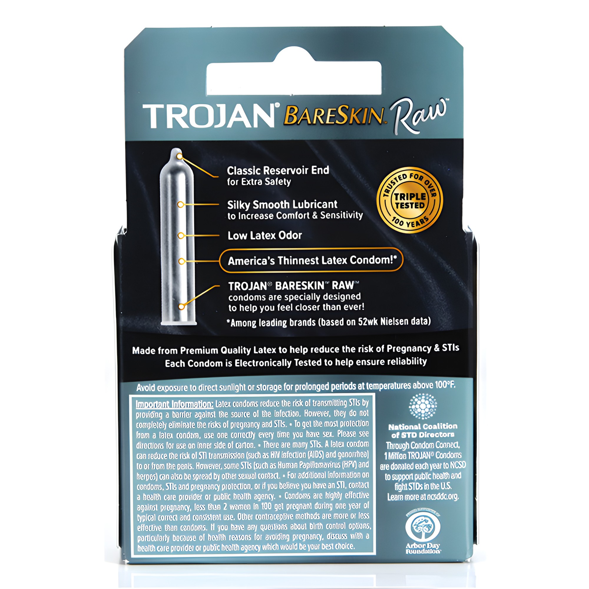 Experience intimacy like never before with Trojan Raw Condoms! As America's thinnest latex condom, it allows for maximum sensitivity and closeness.