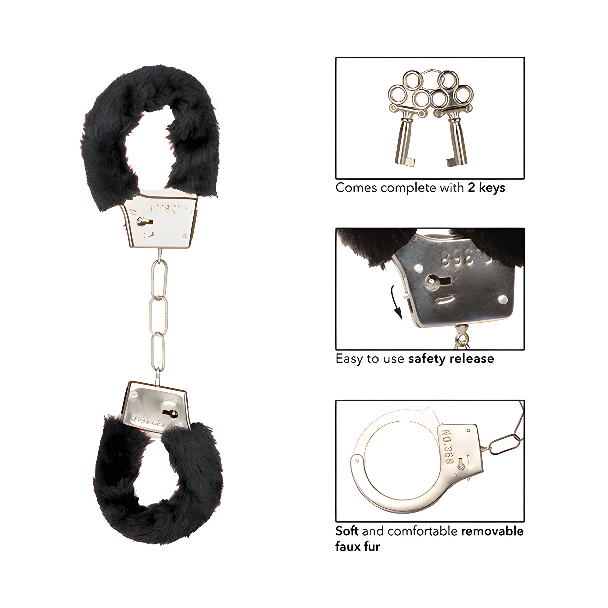 These versatile handcuffs are perfect for beginners or experienced users and feature a plush faux fur covering for comfort.