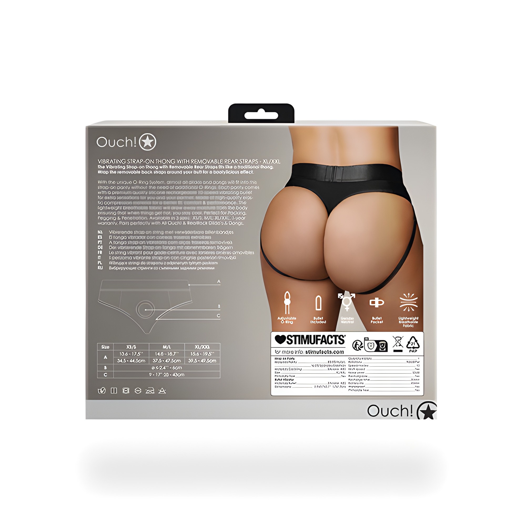 Shots Ouch Vibrating Strap On Thong w/Removable Rear Straps - Black XL/XXL