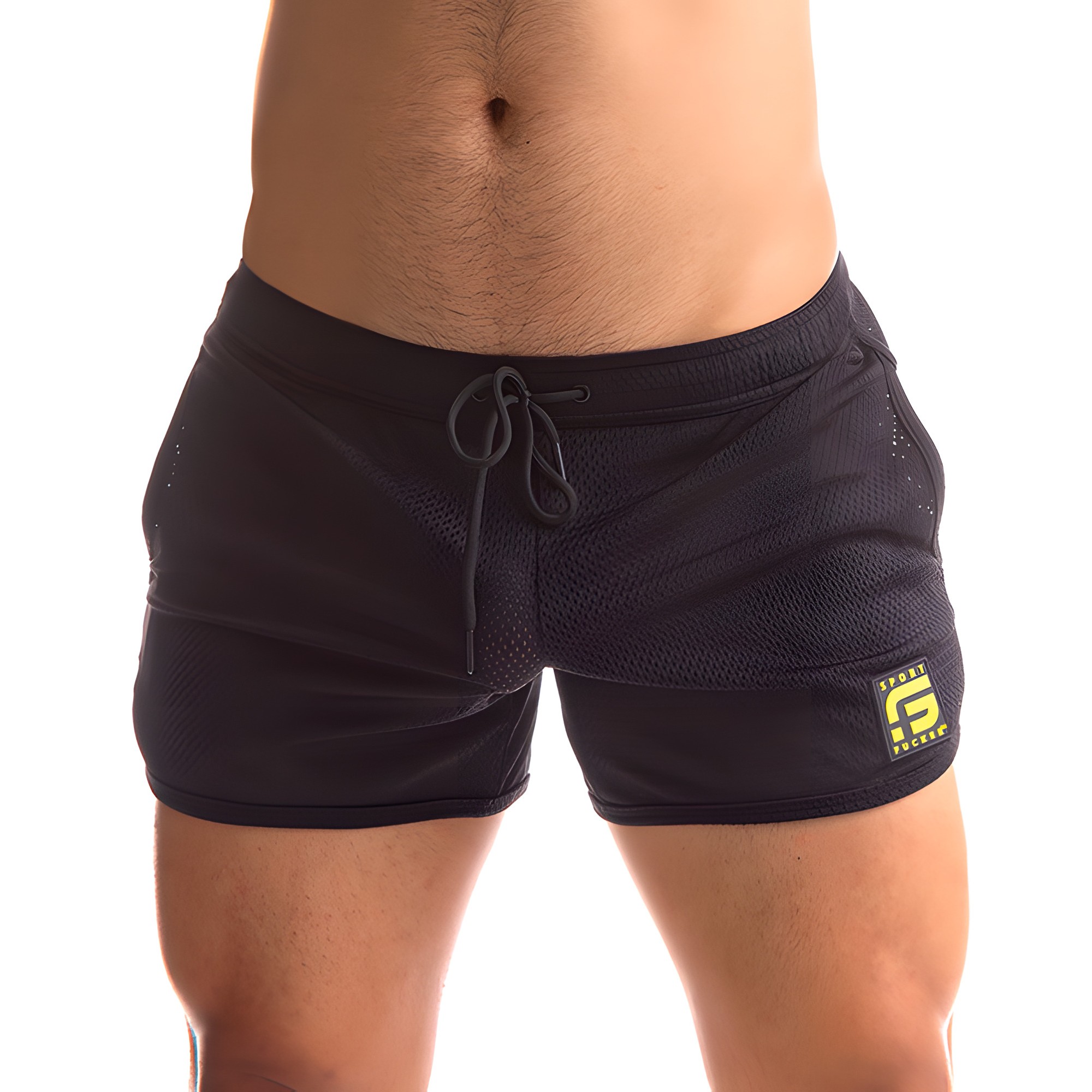 Featuring a drawstring waist and two pockets, you'll never know if the other guys are looking at the SF logo or trying to catch a glimpse of what lies underneath the barely see-through mesh.