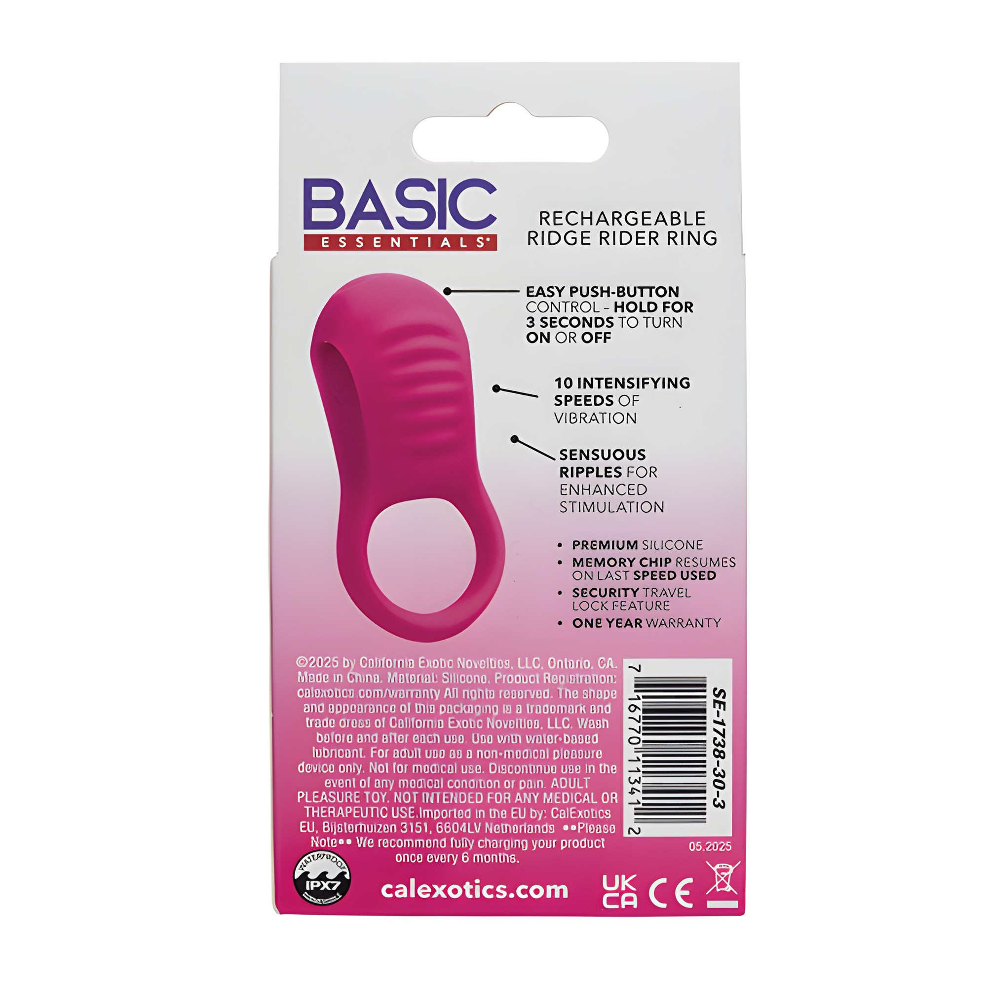Enhance your intimate moments with the Basic Essentials Rechargeable Ridge Rider Ring.