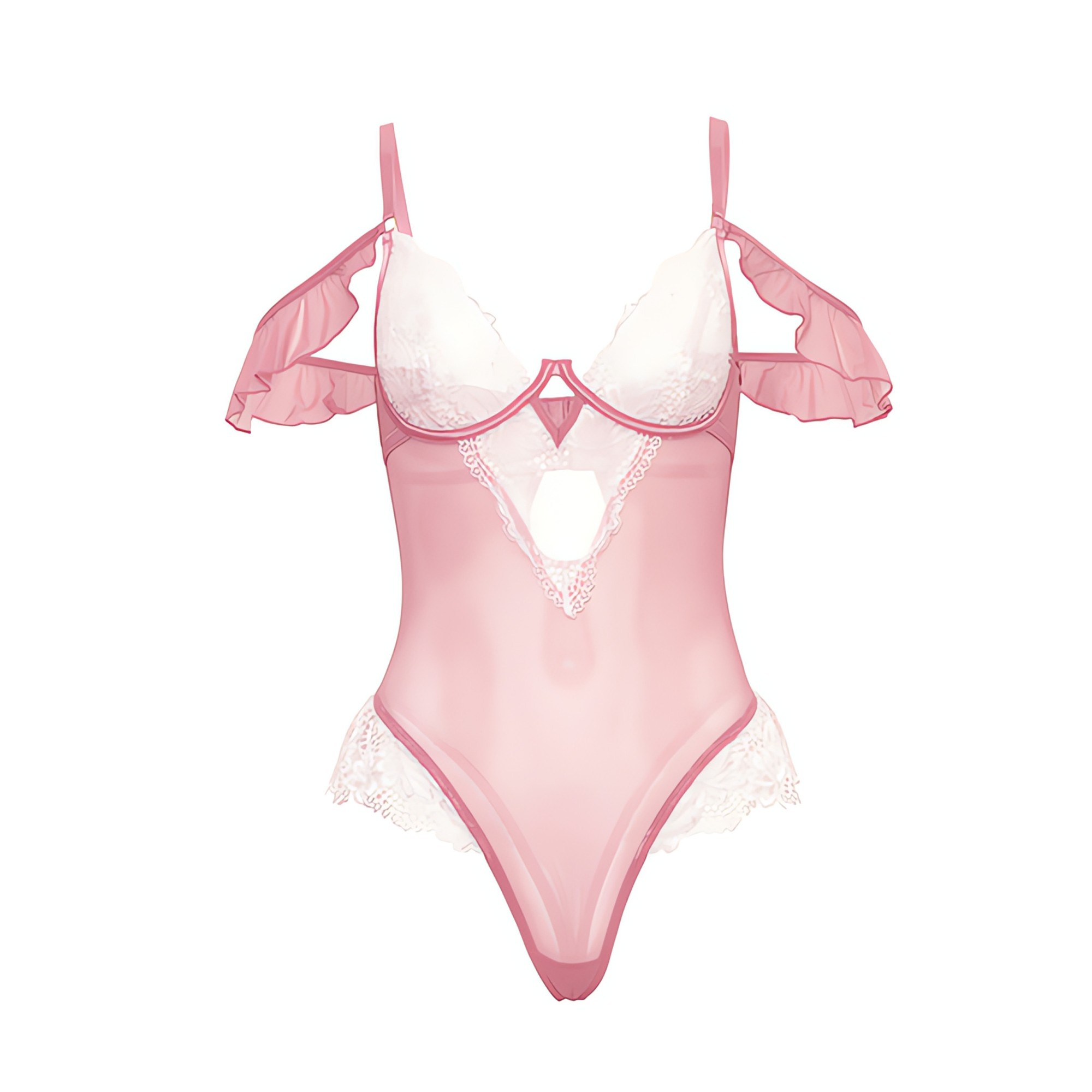 Featuring ruffle details, this pink and white teddy is perfect for those who appreciate elegance in their intimate apparel.