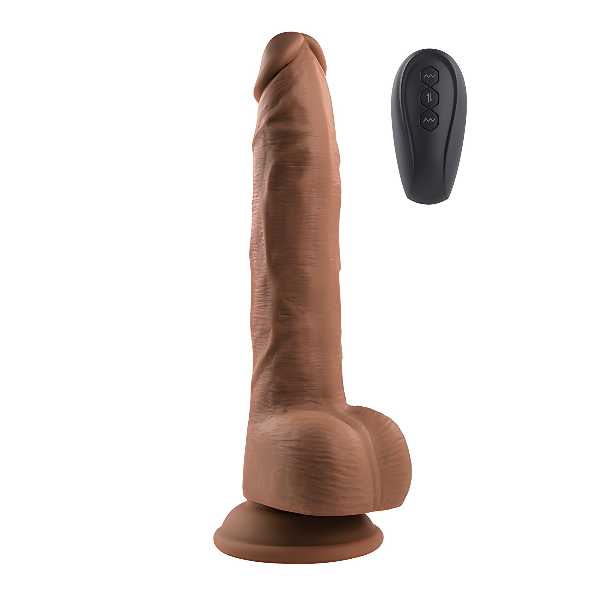 This realistic thrusting vibrator features a life-like textured shaft and balls, with two separate motors for customizable experiences.