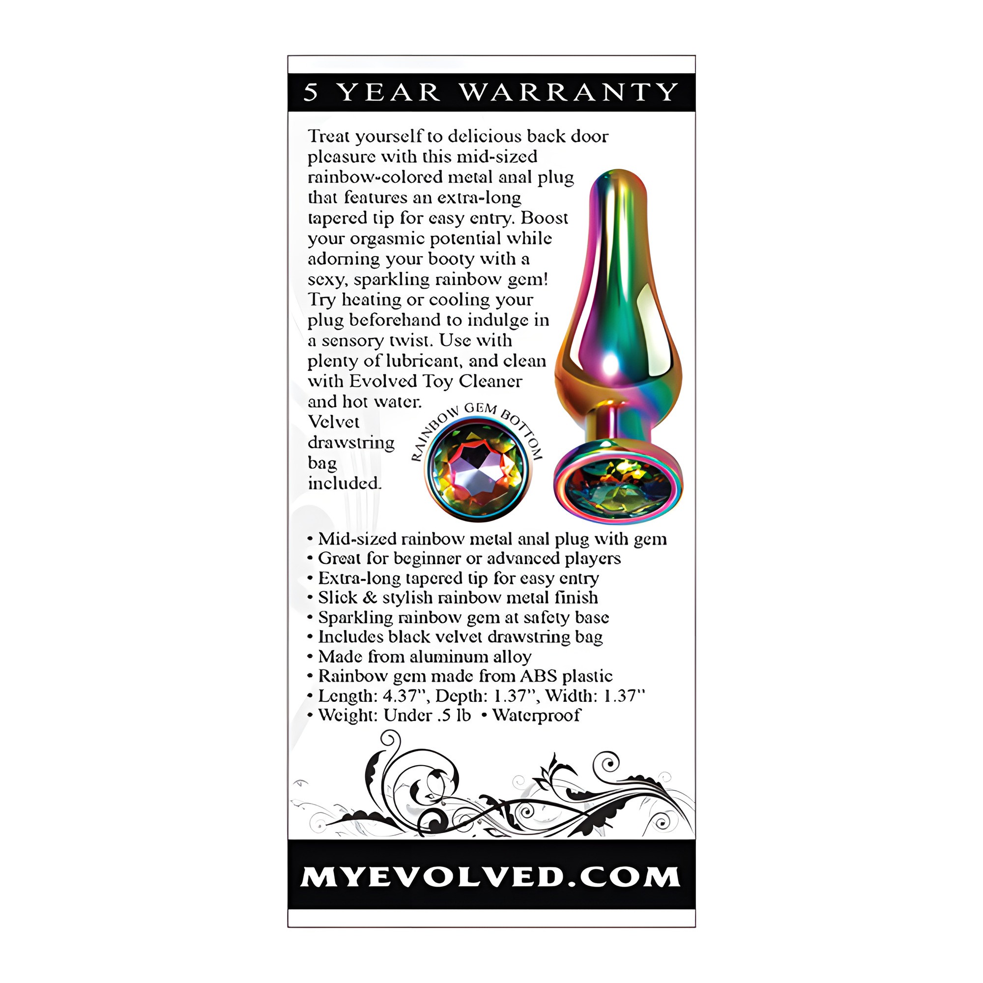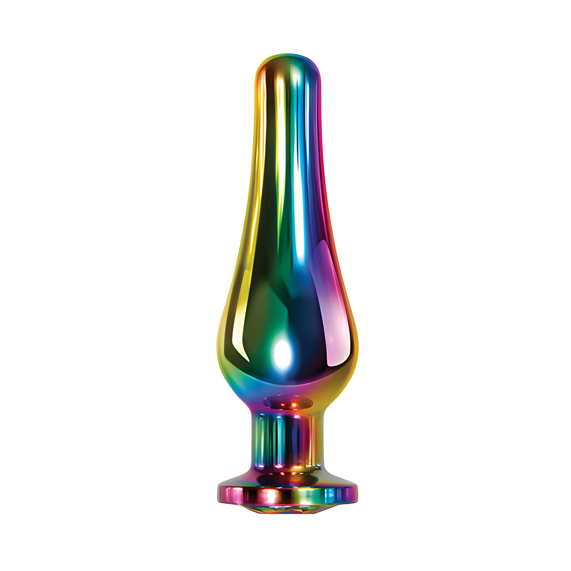 Este plug de tamaño mediano presenta un acabado arcoíris elegante y una gema brillante, mejorando tu experiencia con un toque de estilo.