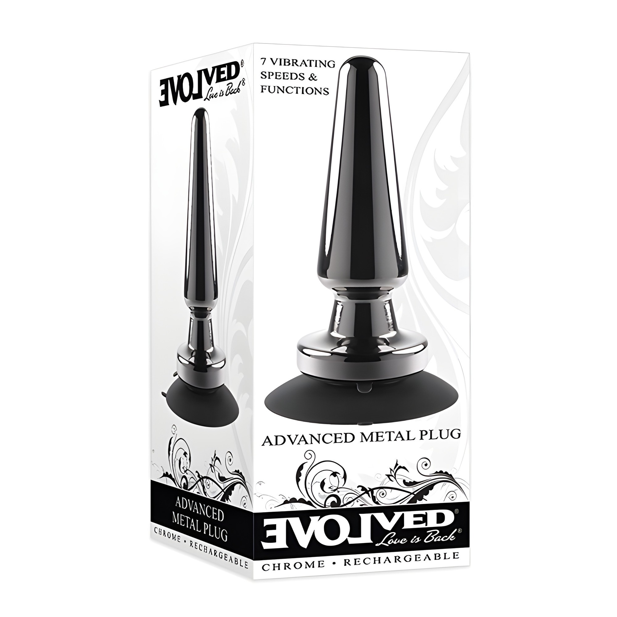 Descubre el Plug Metálico Vibrante Recargable Avanzado Evolved, diseñado para los buscadores de placer! Su forma cónica y punta redondeada aseguran una fácil inserción y una sensación de plenitud satisfactoria.