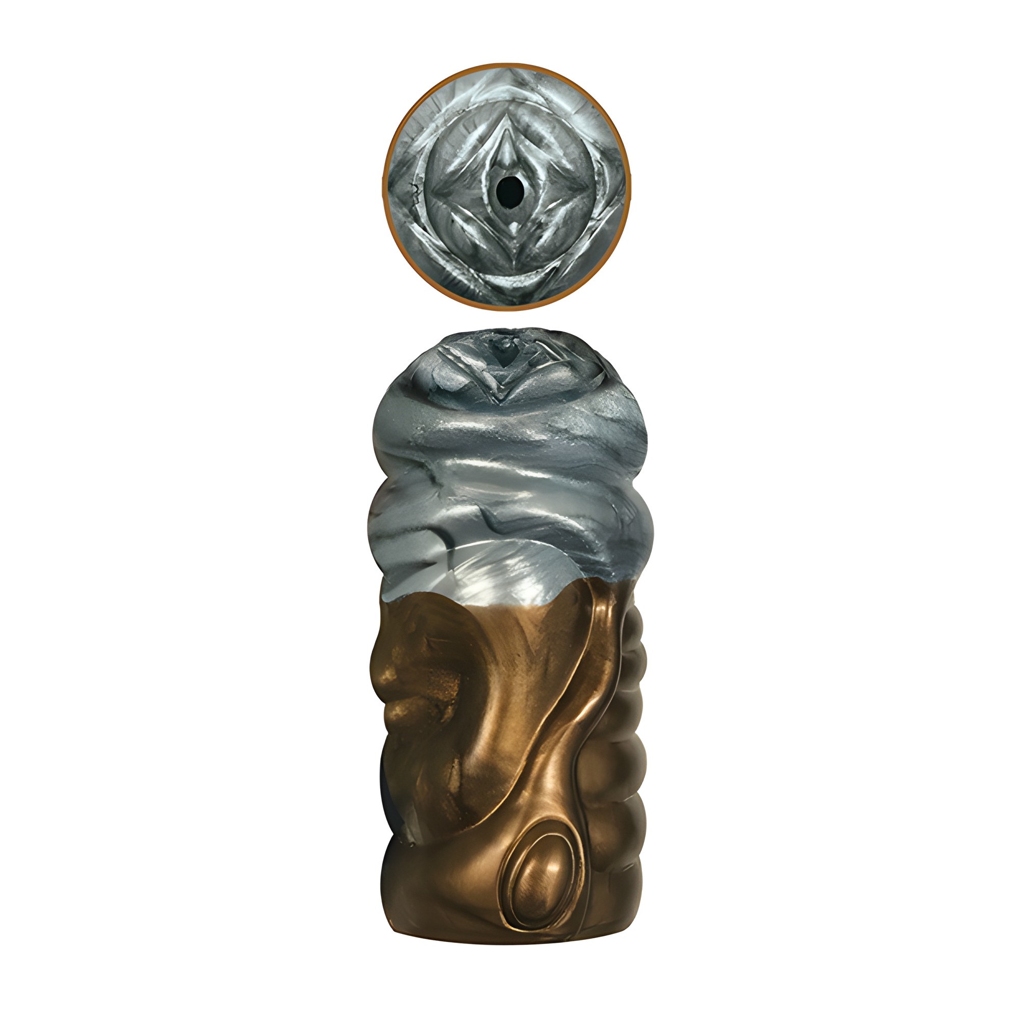 Fabricado en silicona segura para el cuerpo, este stroker presenta un canal interior tentador y tonos metálicos que deslumbran a la vista.