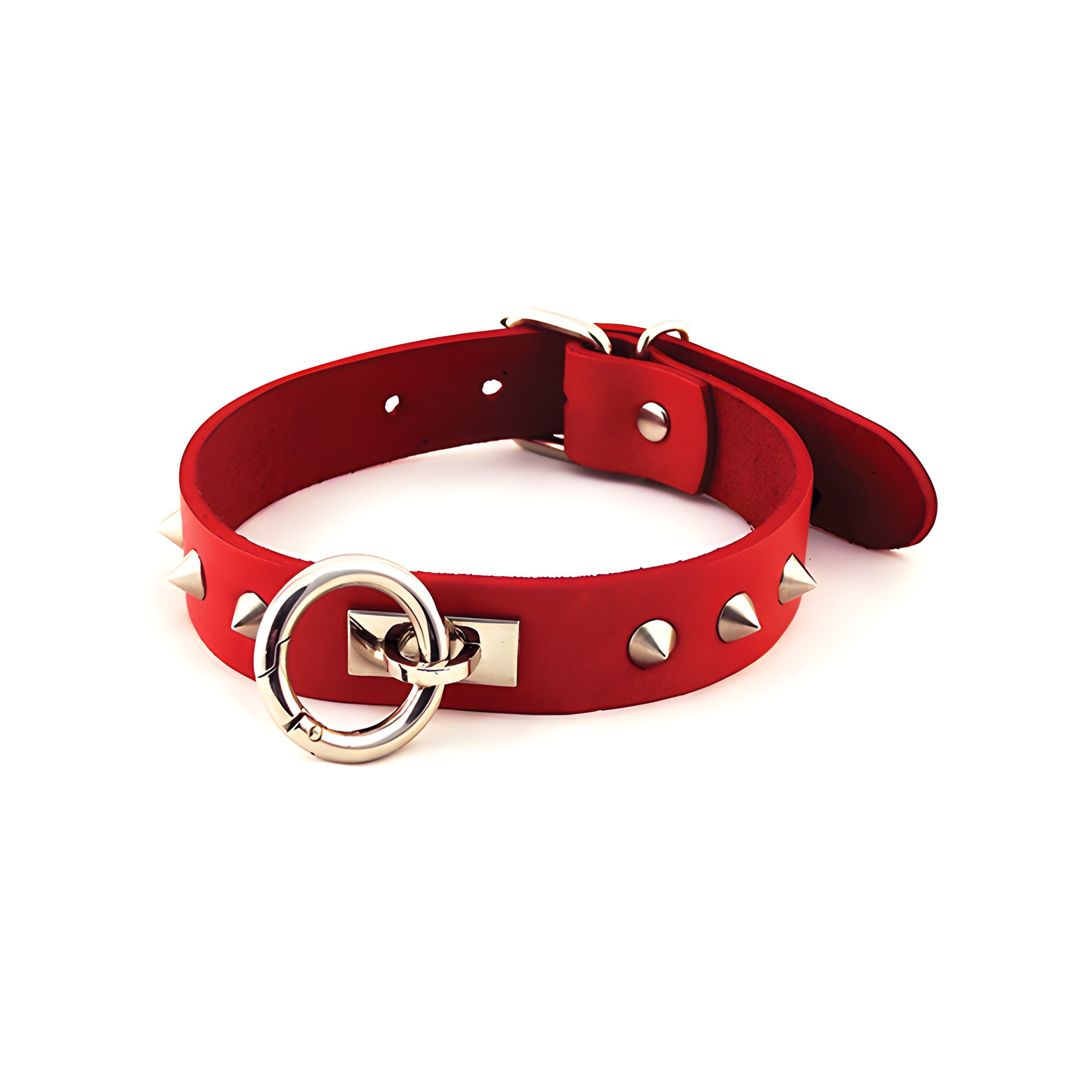 Mejora tu experiencia de bondage con el Collar de Cuero con O Ring Studded Rouge.