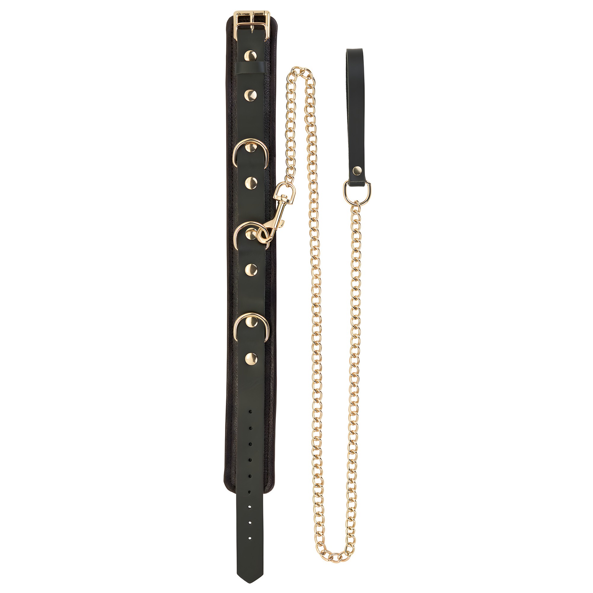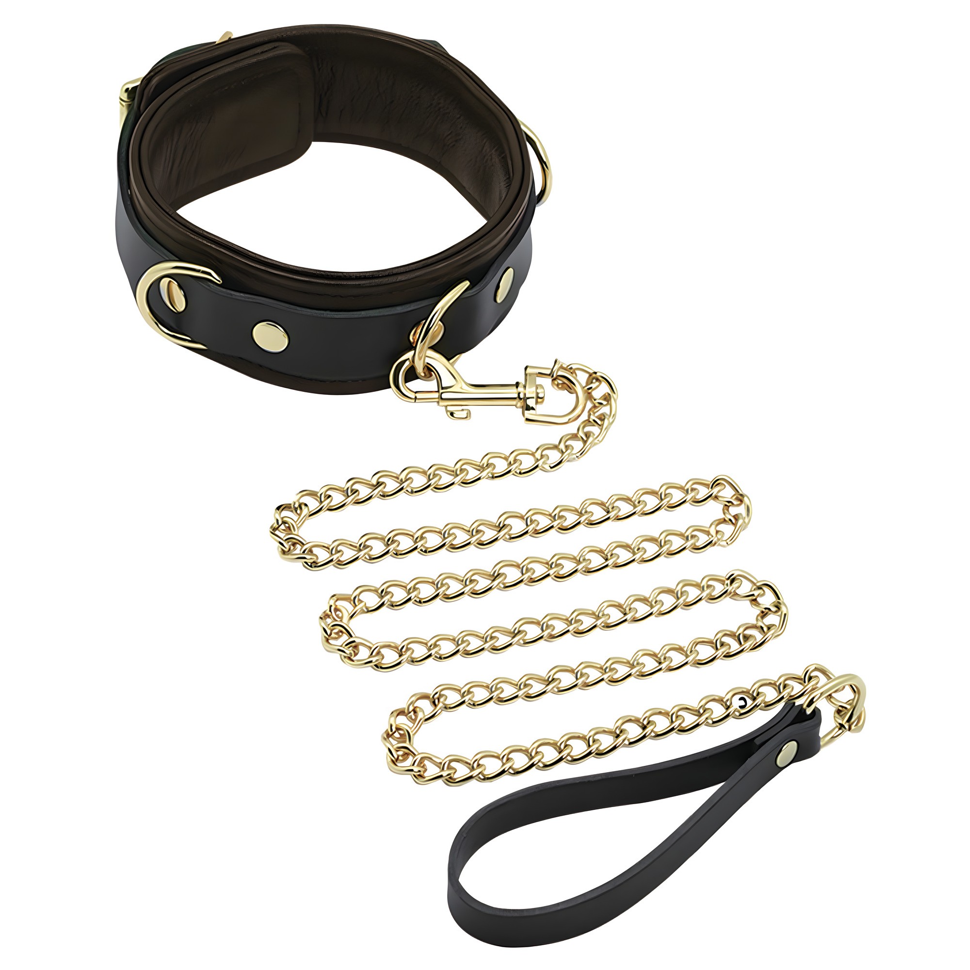 Haz una declaración audaz con el Collar y Correa Spartacus, hecho de cuero marrón premium con impresionantes acentos dorados.