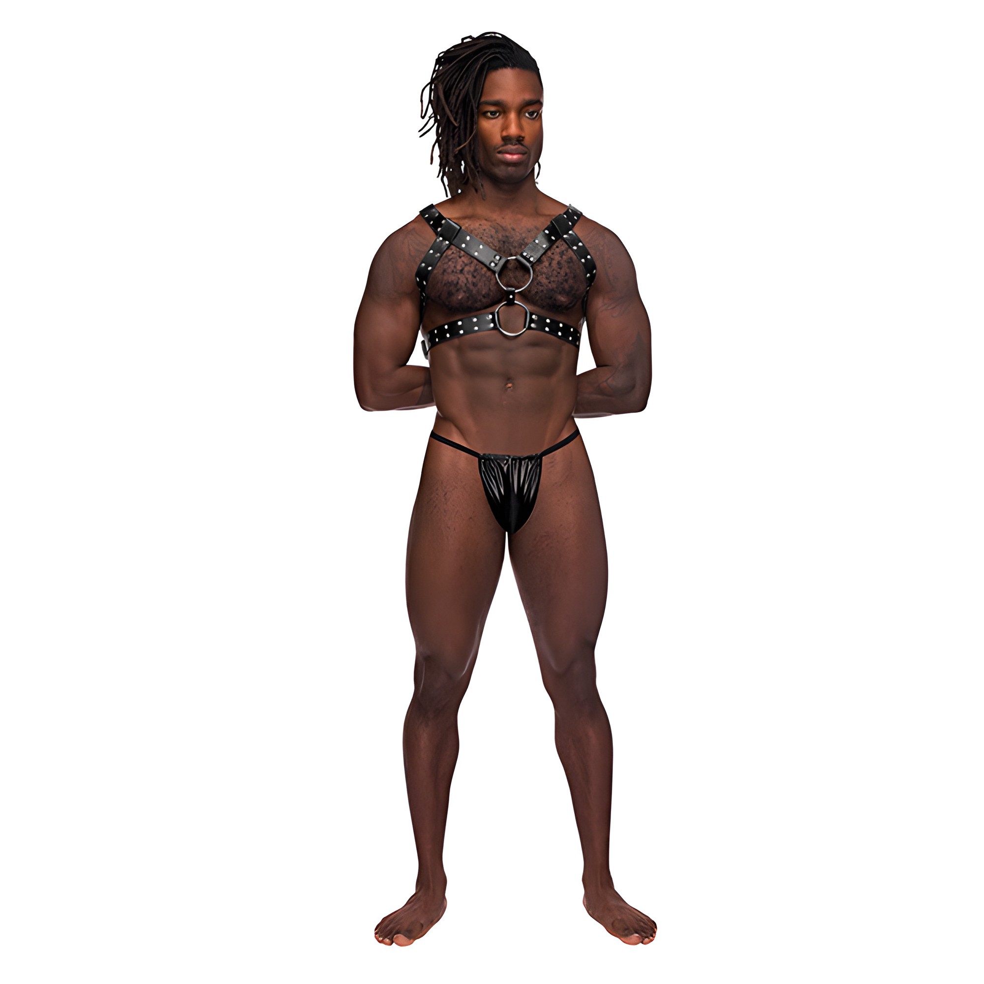 Con correas dobles y hebillas de metal ajustables, es perfecto para quienes desean elevar su vestimenta fetichista.