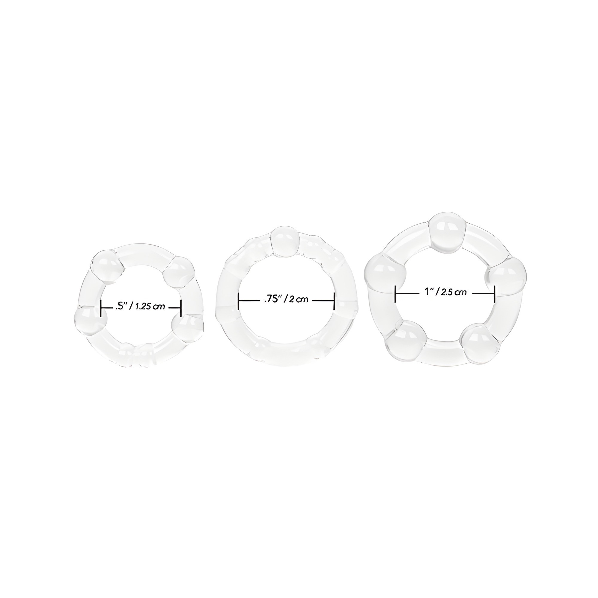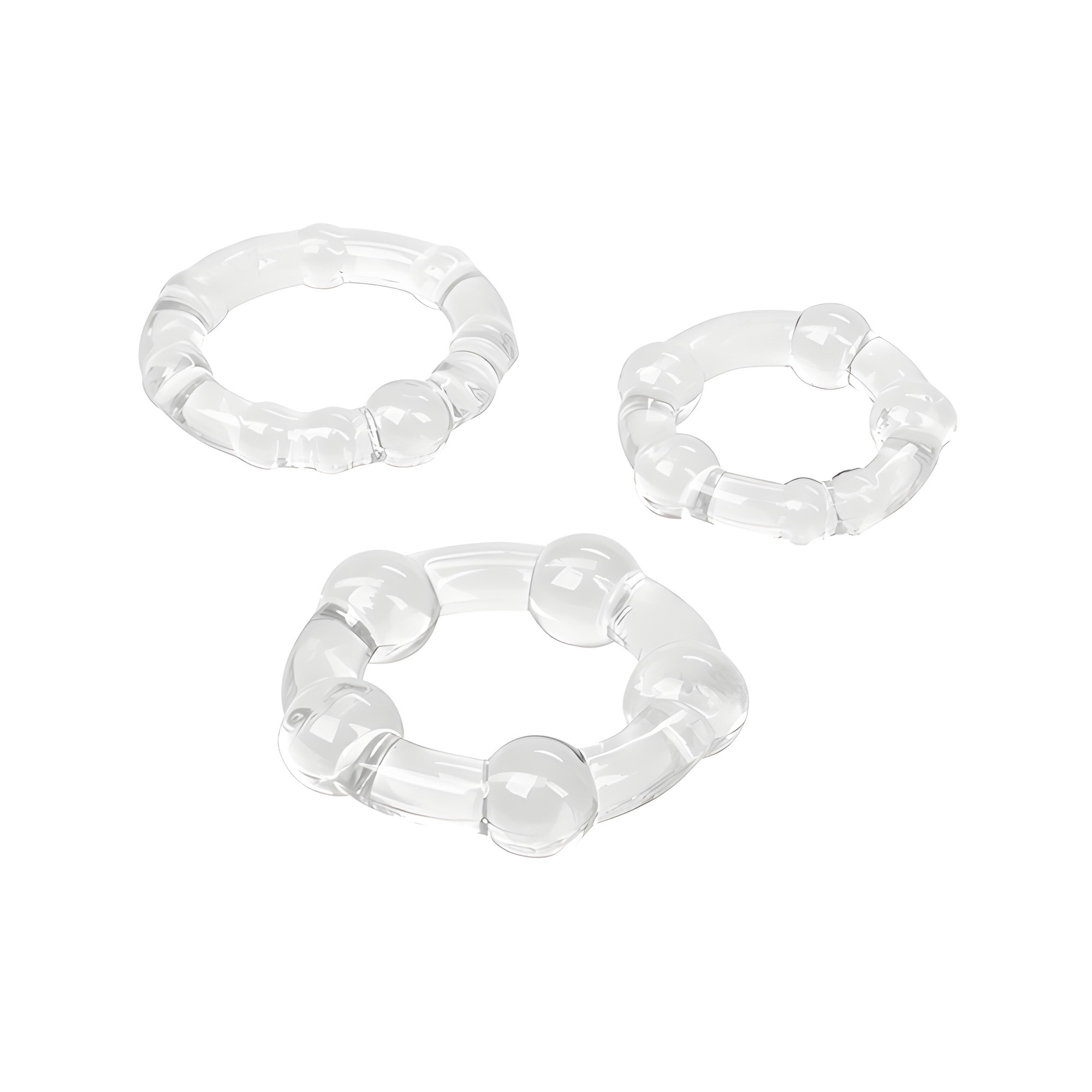 Hechos de TPR transparente y suave, estos anillos cuentan con perlas de placer para mayor emoción.